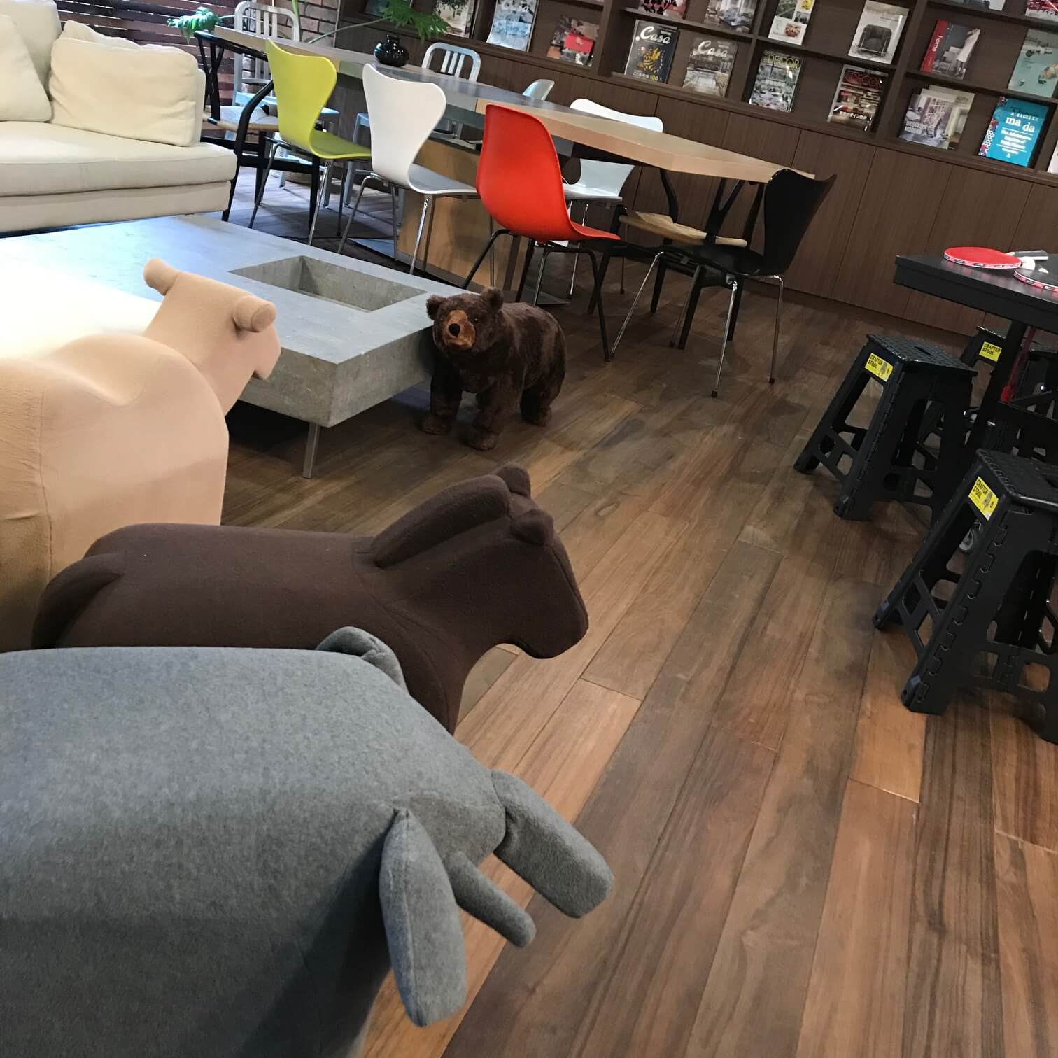 1)これまで「架空の動物園」が特徴の建設現場を展開してきた同社の「本社にも特徴を持たせる」こと。