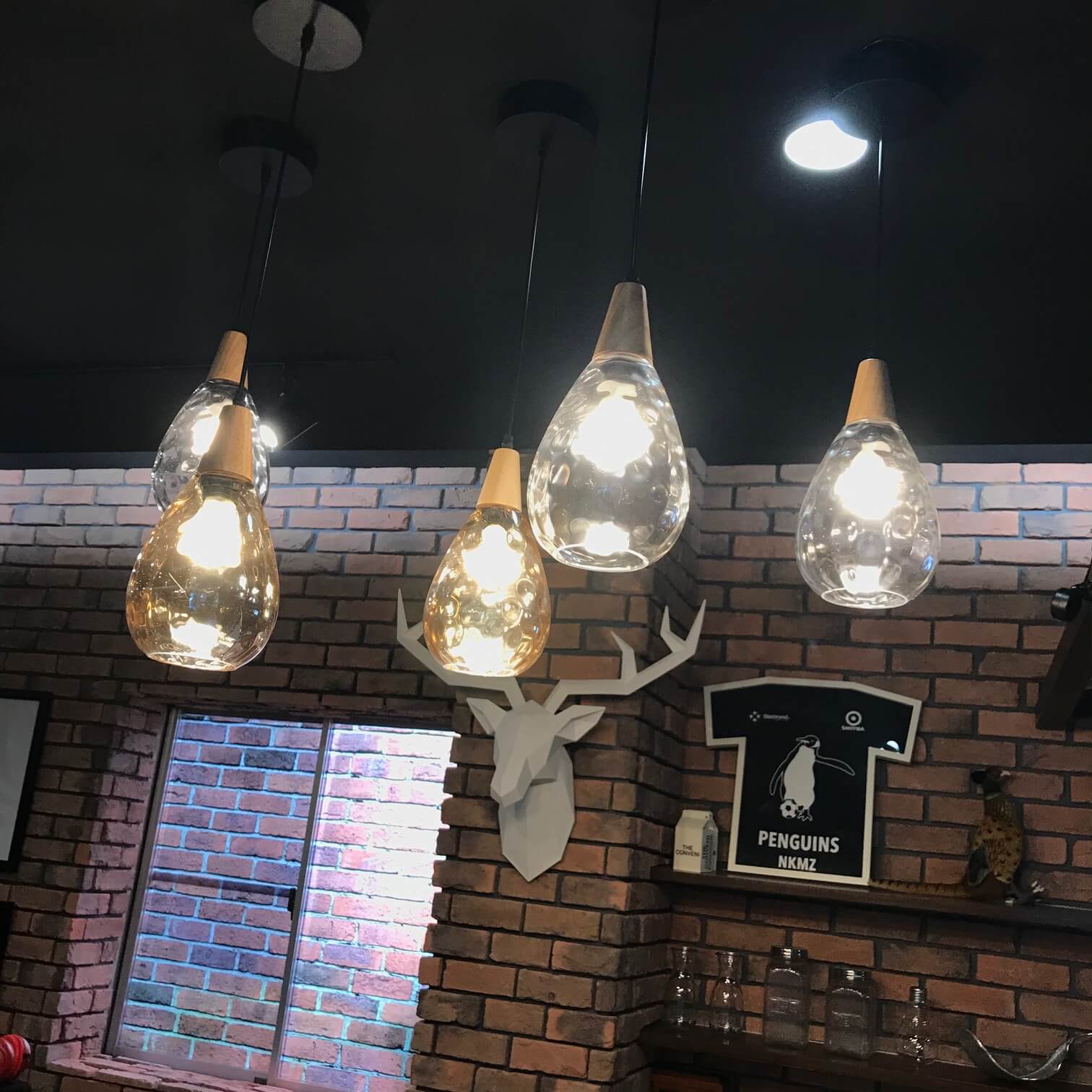 2)吊り下げの照明もすべて異なる形のものを海外から輸入する徹底ぶり