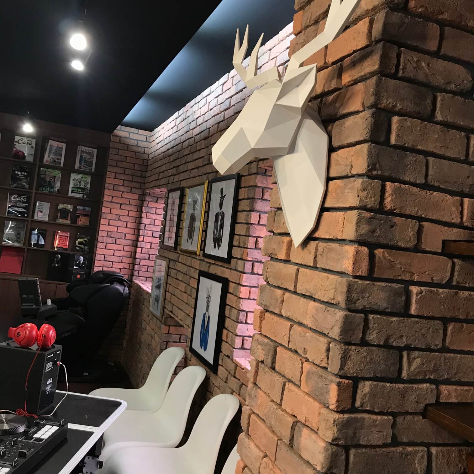1)相当な量の赤レンガを壁に貼り(職人さん泣かせ)